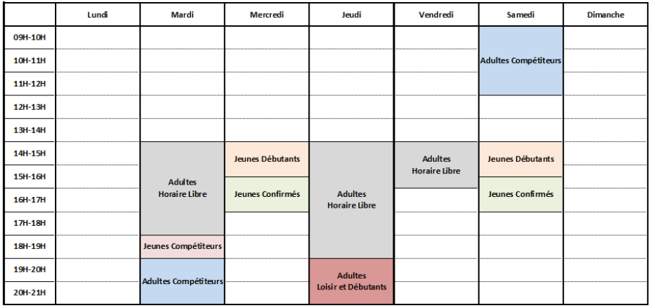 NB: Ces horaires sont susceptibles d'être modifiés au cours de l'année, en fonction des demandes de nos archers et des possibilités de la mairie de Béziers.
